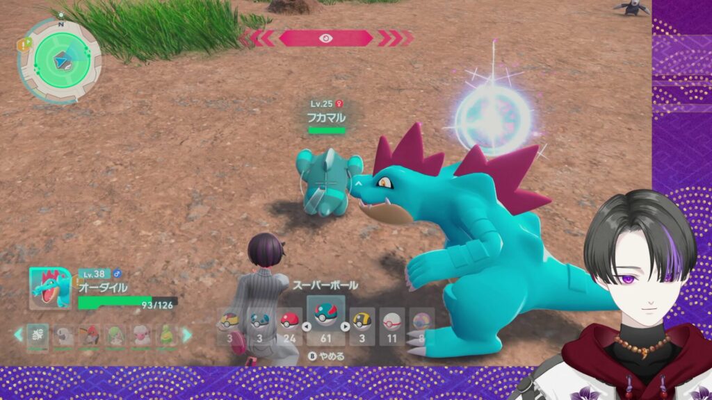 今回捕獲したフカマル…なんと偶然にも性格「いじっぱり」(攻撃↑特攻↓)とかいう、なかなかに良き個体でして!!これはもうパーティーメンバーにするしかないなと!!!