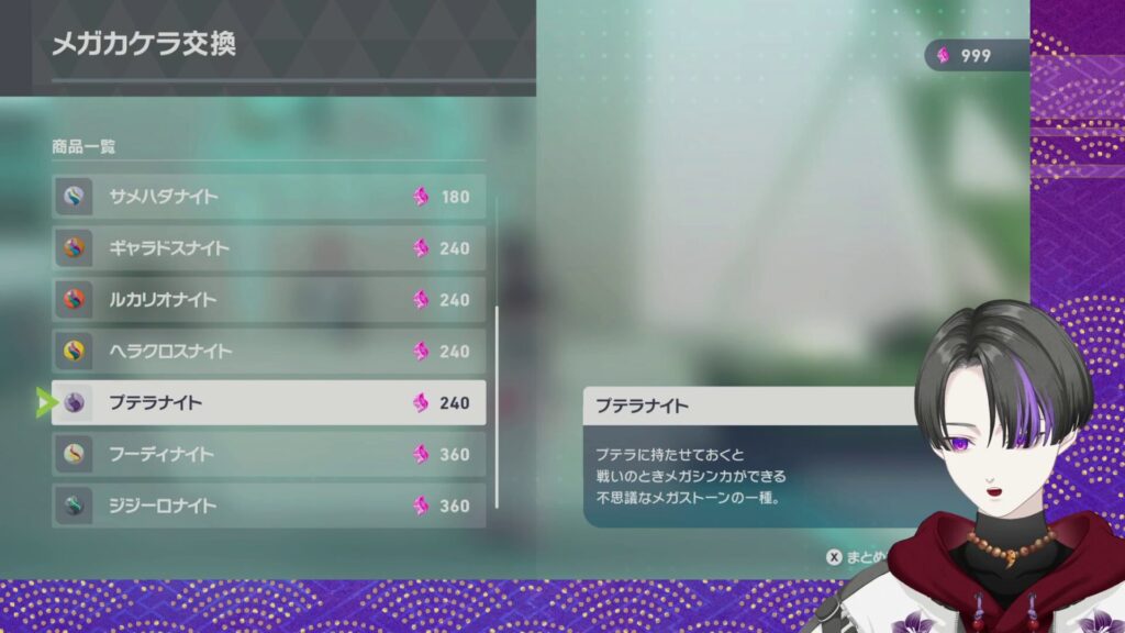 その後、ようやっとメガカケラの使い道を把握したよ!!まあ薄々そういうことかなって思ってはいたけども!!にしても必要数多くないかい!?心折れちゃうよぉ!!